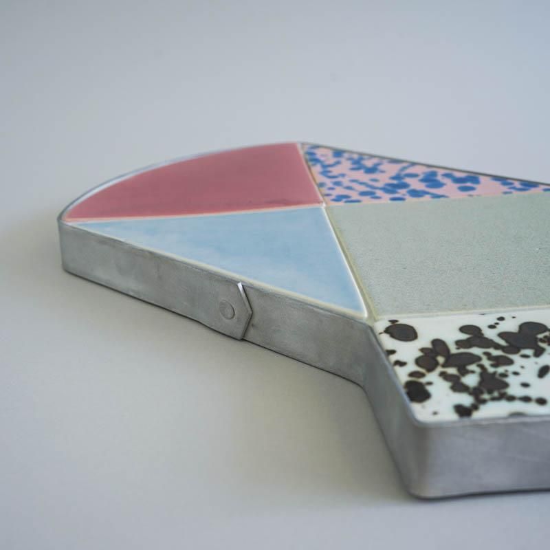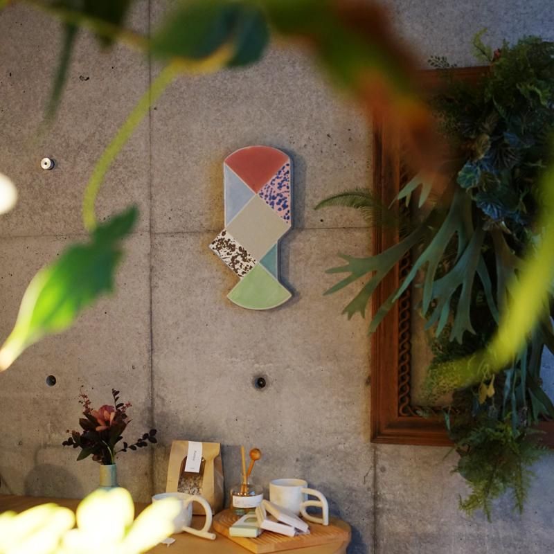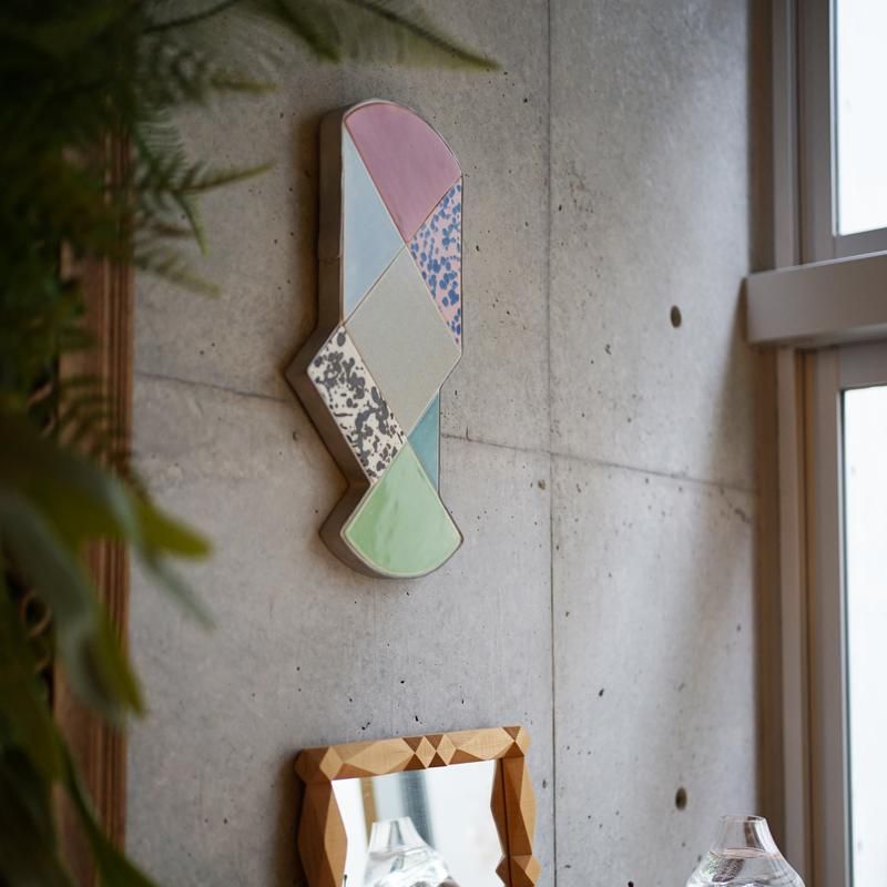 陶芸家・竹村良訓による一つ一つ釉薬の異なる陶製タイルを、金工の成瀬治が組み合わせ、縁取るように額装した壁掛けのアートピース。一枚のタイルのピースが、積み木のように構築されていく様から、”BAU”(ドイツ語で建築、構造)と名付けました。扱うマテリアルも作風も異なる二人のクリエーションが合わさることで生まれた、全く新しいアート。自由な解釈で、楽しんでいただきたい作品です。