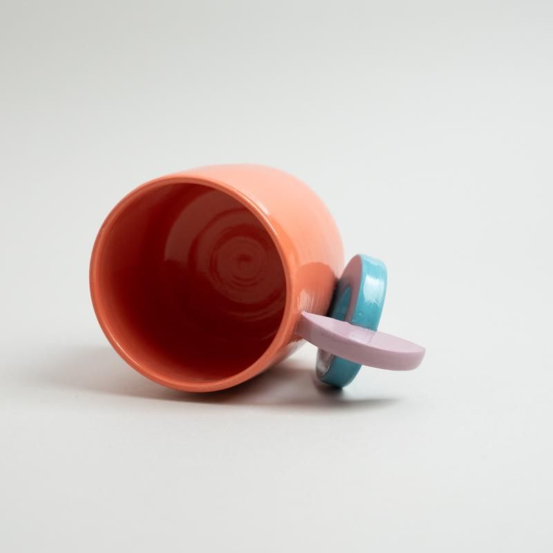 Cute new toy series with toy-like parts. They are made using the kneading method, in which colors are added to the clay itself. It is a fun vessel that shows how the artist “plays” with the colors and shapes.