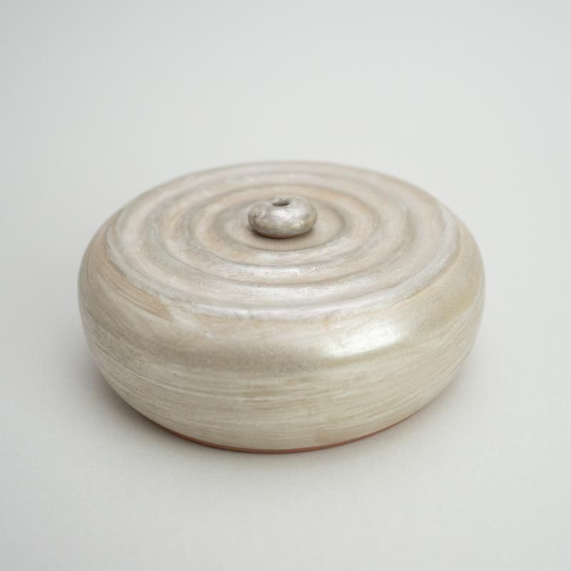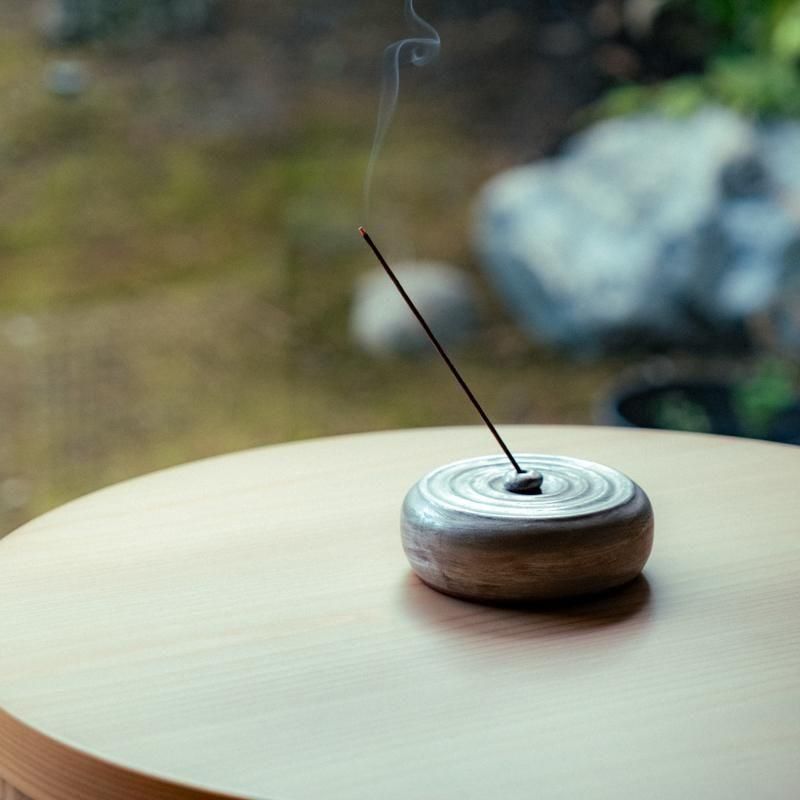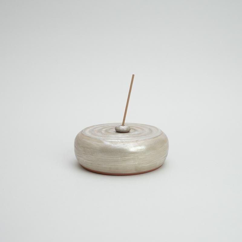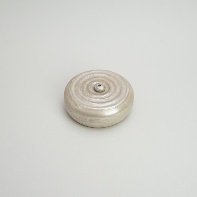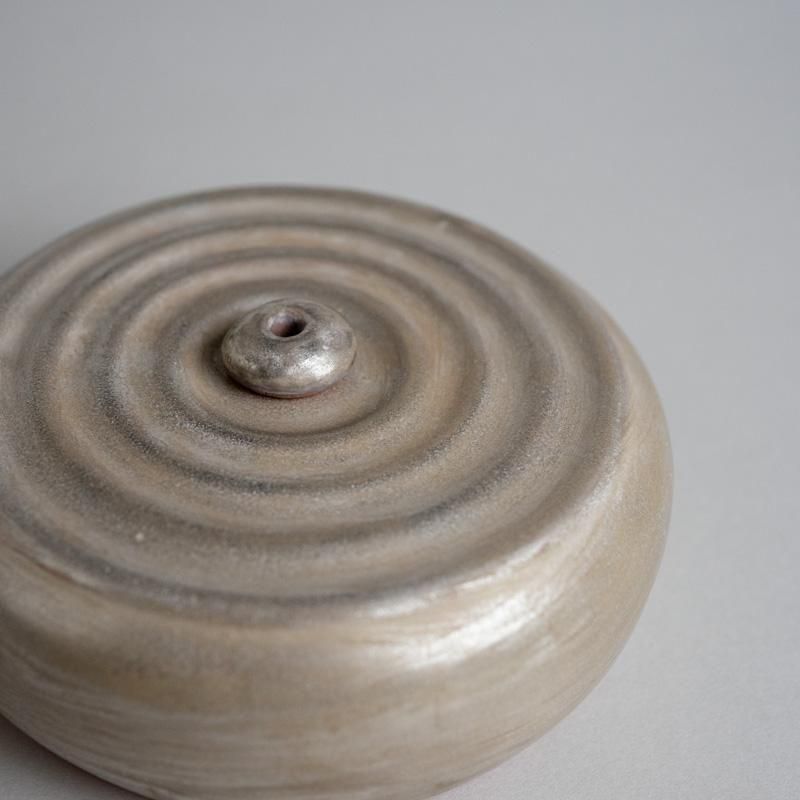 水面にできた波紋から着想したお香たて。枯山水を思わせる、静的な美しさを宿した作品です。和にも洋にも馴染む佇まいも魅力です。