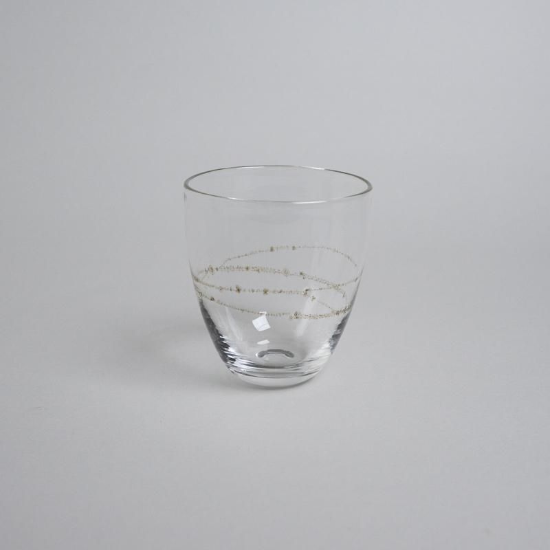 真鍮の泡を閉じ込めた、ガラスのカップ。口に向かってゆるやかに広がったフォルムなので、スタッキングも可能。中にドリンクを入れた時も美しい器です。