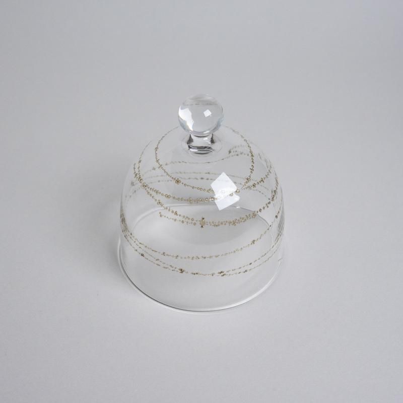 A glass dome enclosing bubbles of brass ― its presence evokes a celestial body shimmering with starlight. Pair it with your favorite plate to hold baked treats, cherished jewelry, or whatever you wish to display and enjoy.