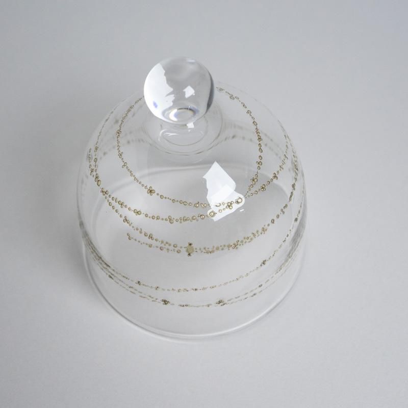 真鍮の泡を閉じ込めた、ガラスドーム。星の輝く天体のような佇まいが魅力です。お手持ちのプレートに合わせて、焼き菓子を入れたり大切なジュエリーを入れたりと、色々お楽しみいただけます。