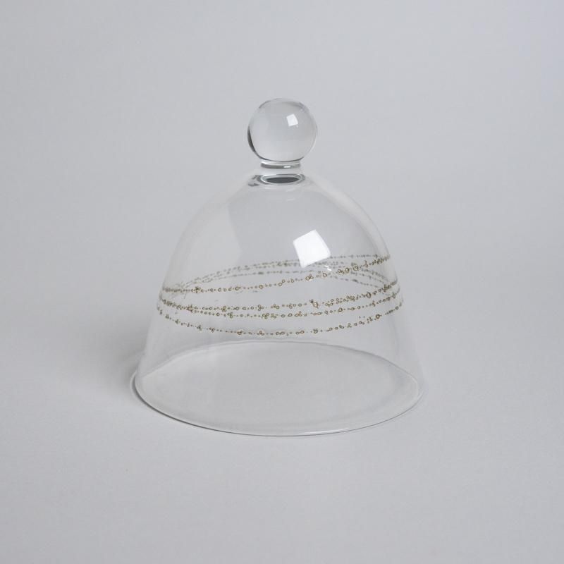 A glass dome enclosing bubbles of brass ― its presence evokes a celestial body shimmering with starlight. Pair it with your favorite plate to hold baked treats, cherished jewelry, or whatever you wish to display and enjoy.
