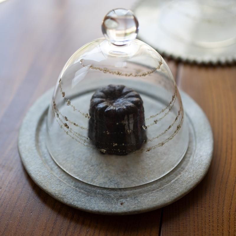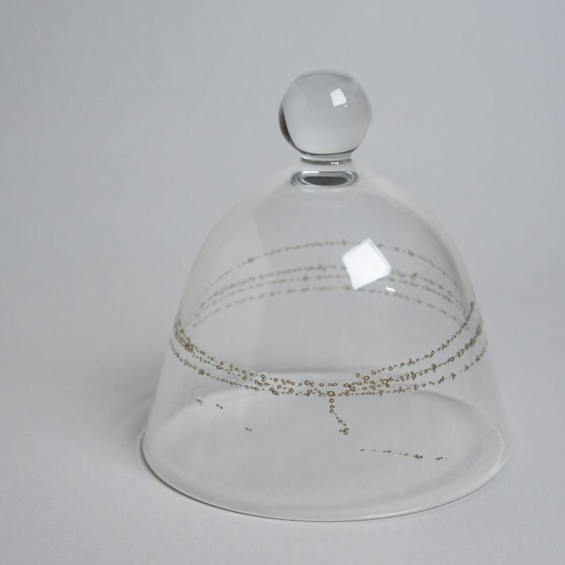 真鍮の泡を閉じ込めた、ガラスドーム。星の輝く天体のような佇まいが魅力です。お手持ちのプレートに合わせて、焼き菓子を入れたり大切なジュエリーを入れたりと、色々お楽しみいただけます。