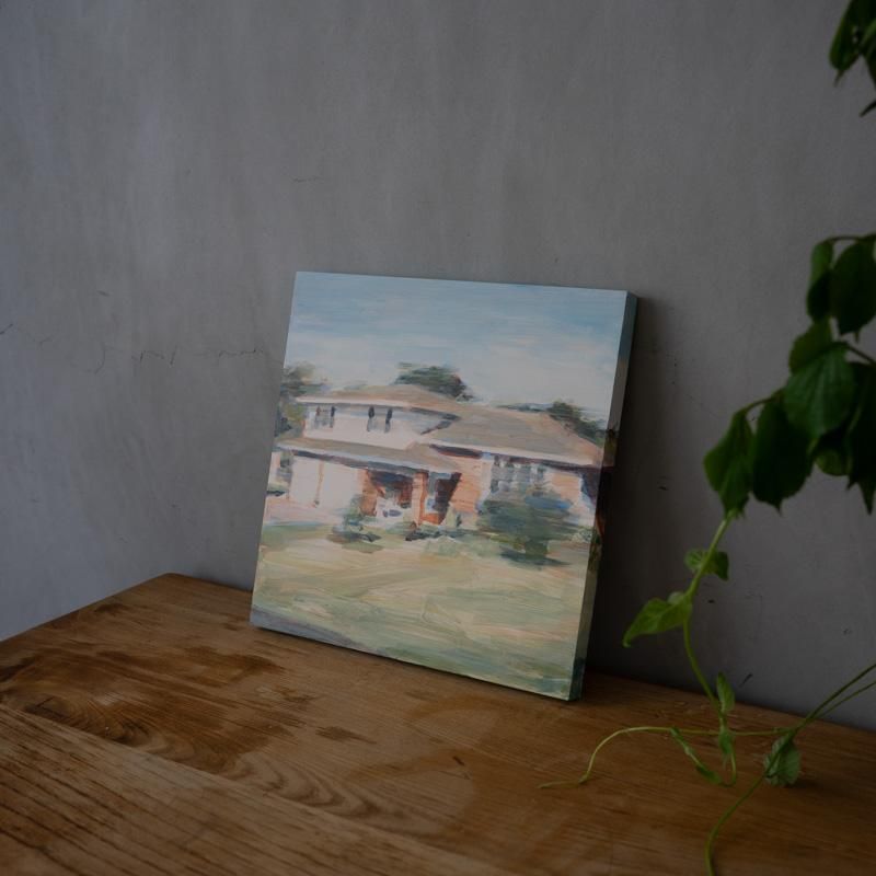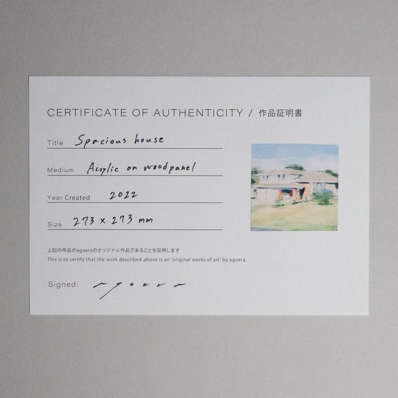 本作は、agoera作品の中でも人気の“家”シリーズ。現実にある家を描きながら、どこか非現実感を感じさせる、浮遊感のある作風が魅力です。