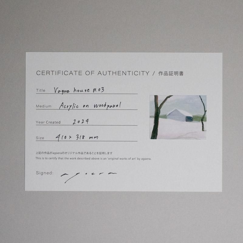 This particular work is part of agoera’s popular “House” series. While depicting real-life houses, the piece exudes a dreamlike, floating quality that gives it a subtly surreal atmosphere―one of the hallmarks of agoera’s style.
