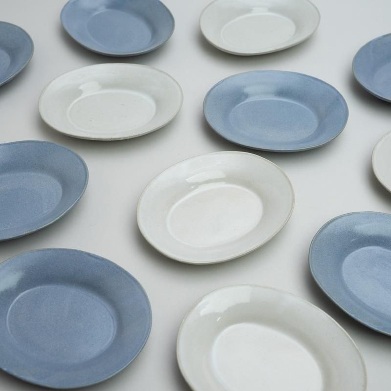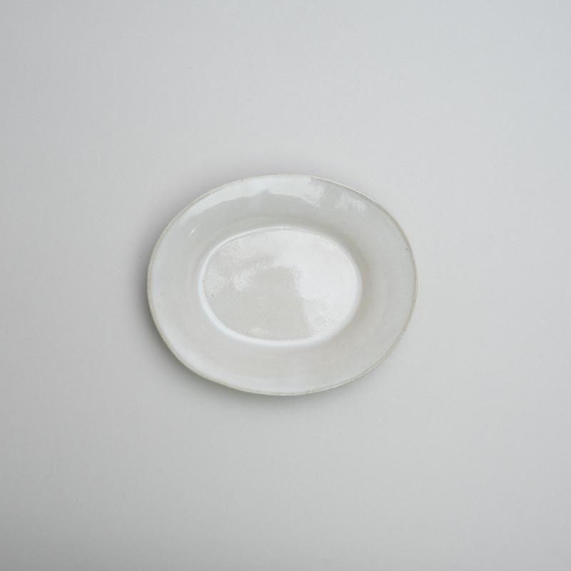 今井律湖の定番のプレート。小さな楕円皿は副菜やお茶請けをのせるのにぴったり。ジュエリーなどの小物を置くトレイとしても。