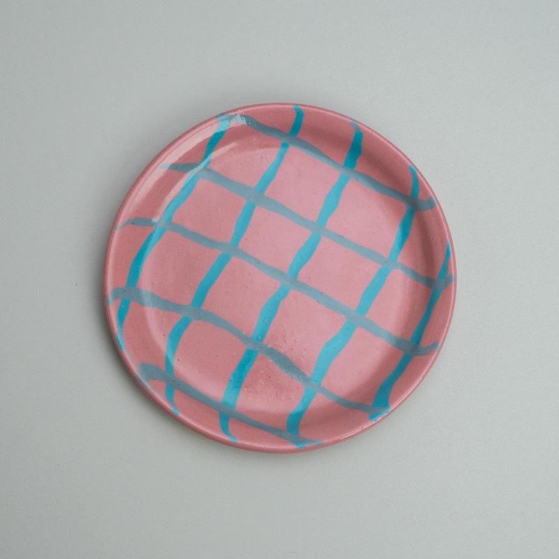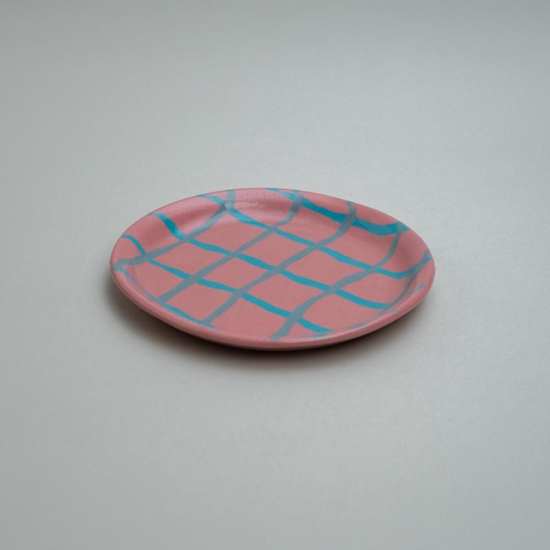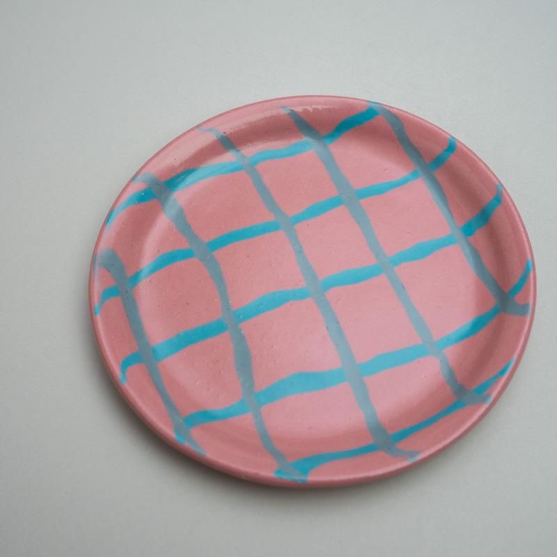 ゆるいタッチのチェックの柄がキュートなプレート。ケーキタイムもより楽しくなりそうな器です。