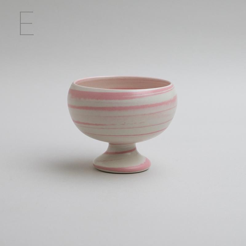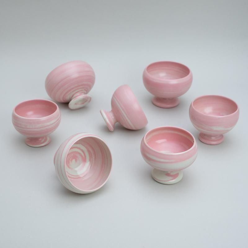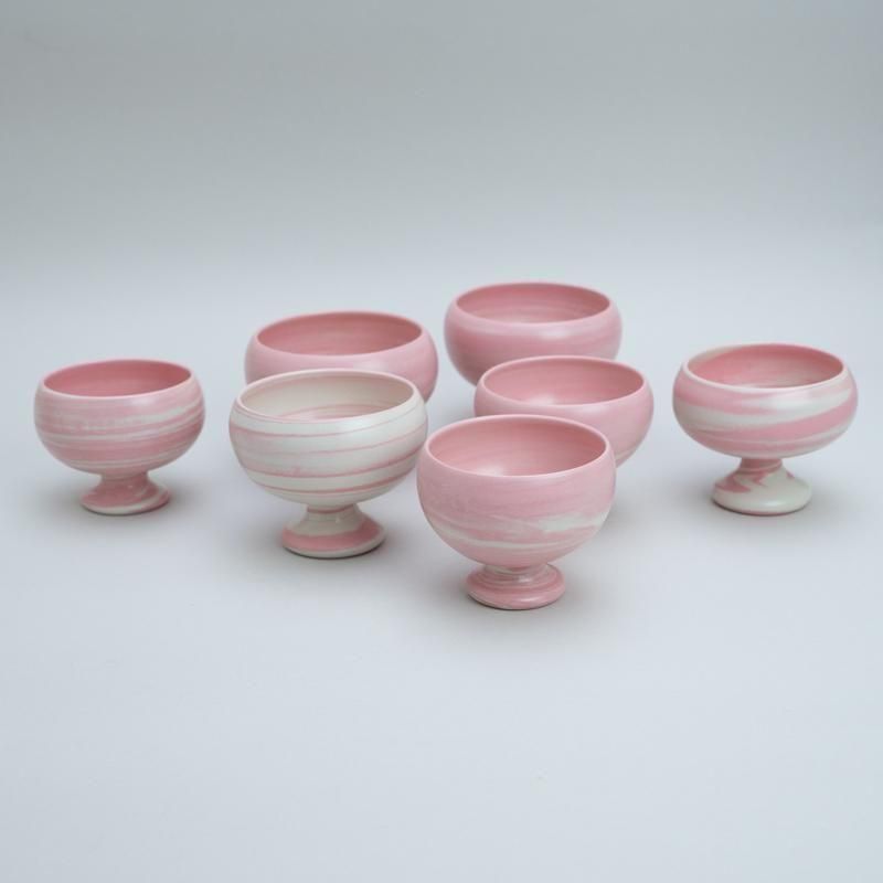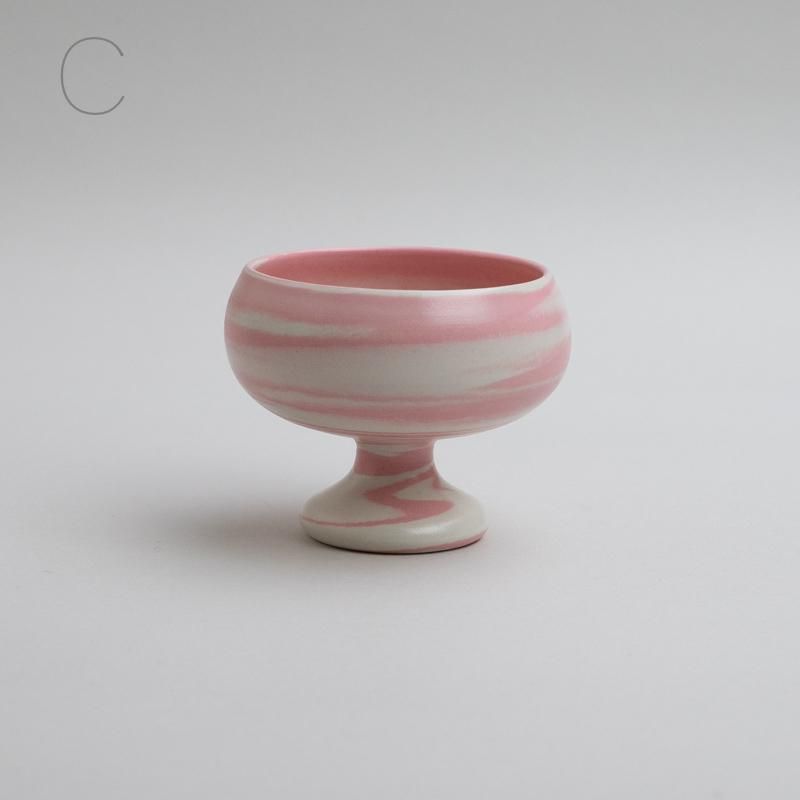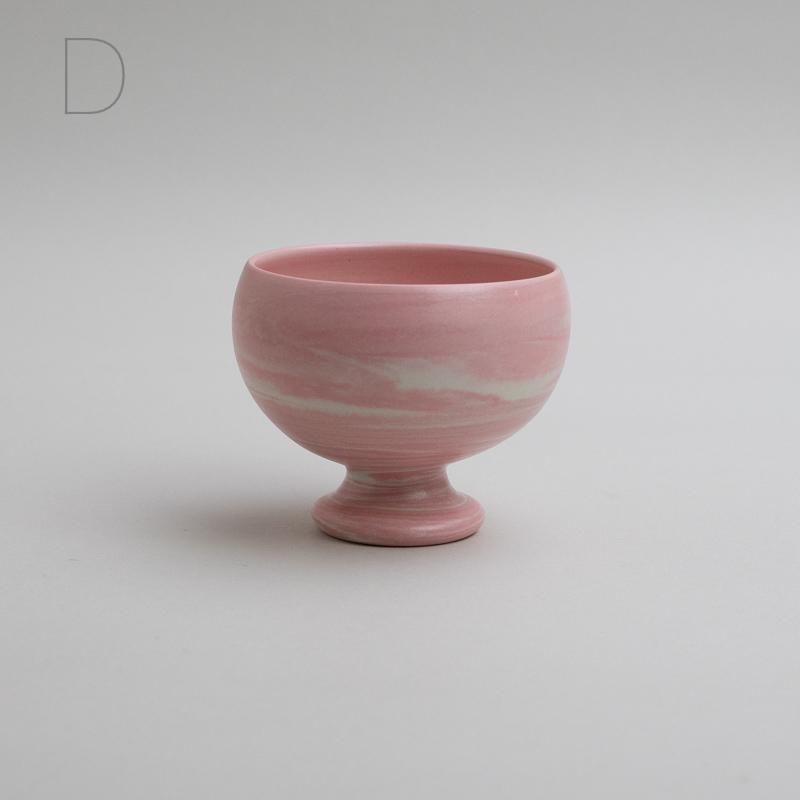 新作のゴブレットたち。シンプルながら愛らしいフォルム、ピンク×白のマットなマーブルがcoz.らしい一品です。