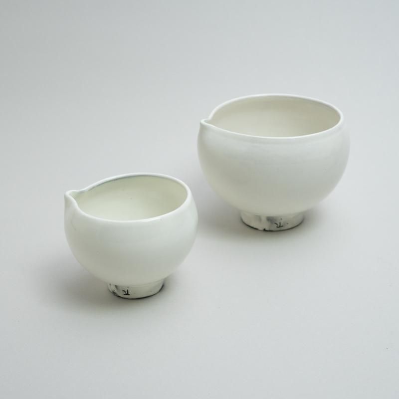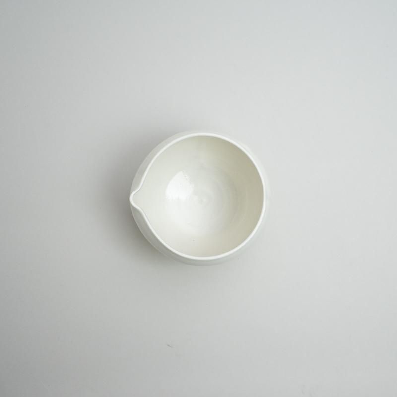 ころんと丸い片口ボウル。愛らしいフォルムにプレーンな白が映えます。
