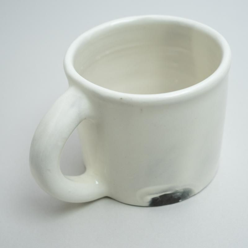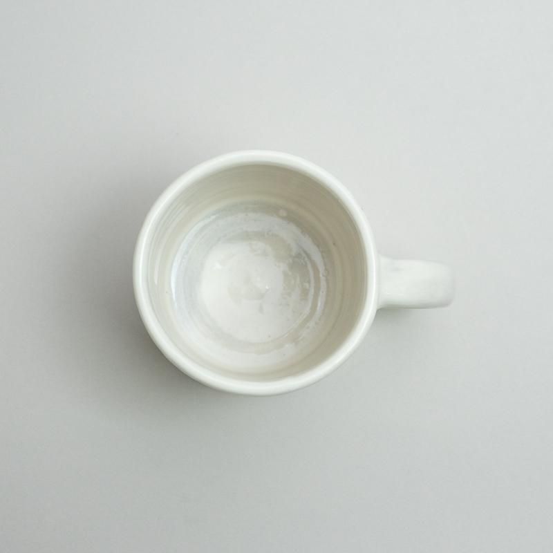 厚めに作られたぽってりとしたマグ。とろみのある白の化粧土が映えます。