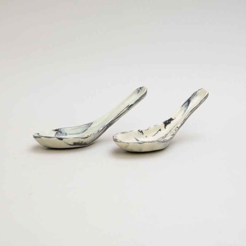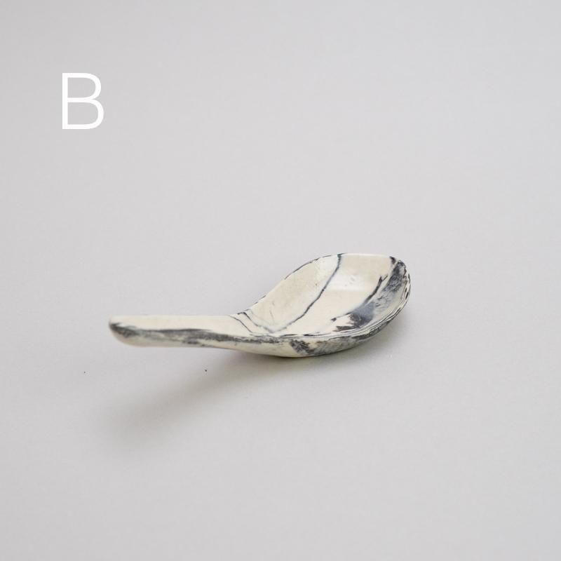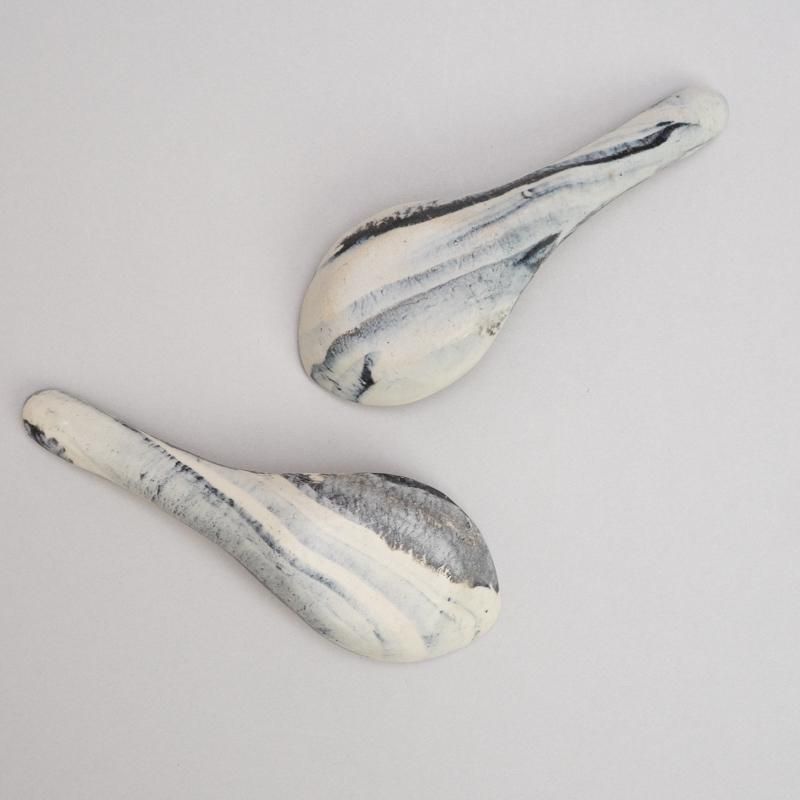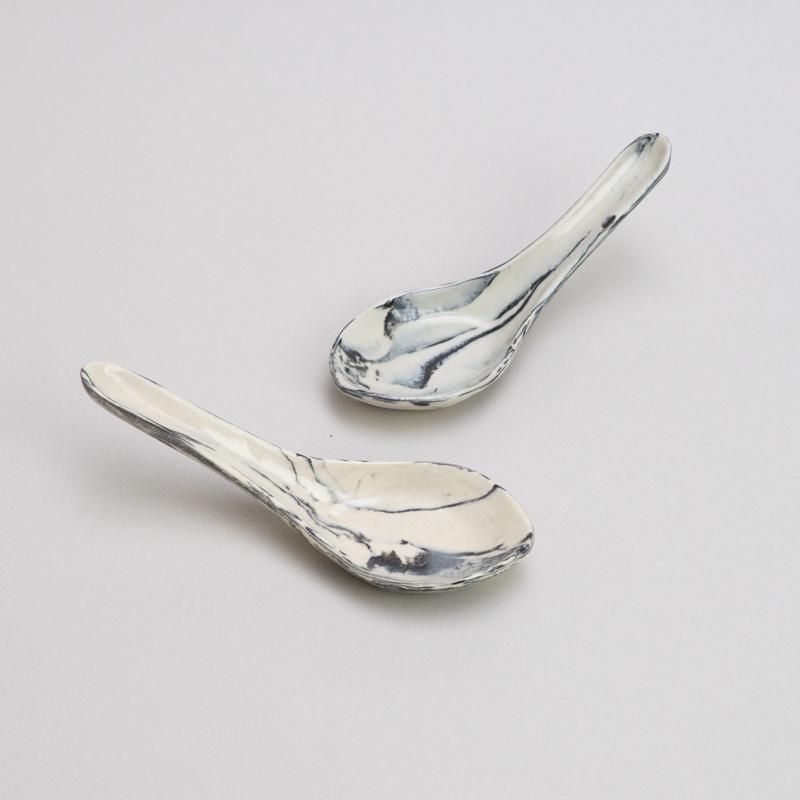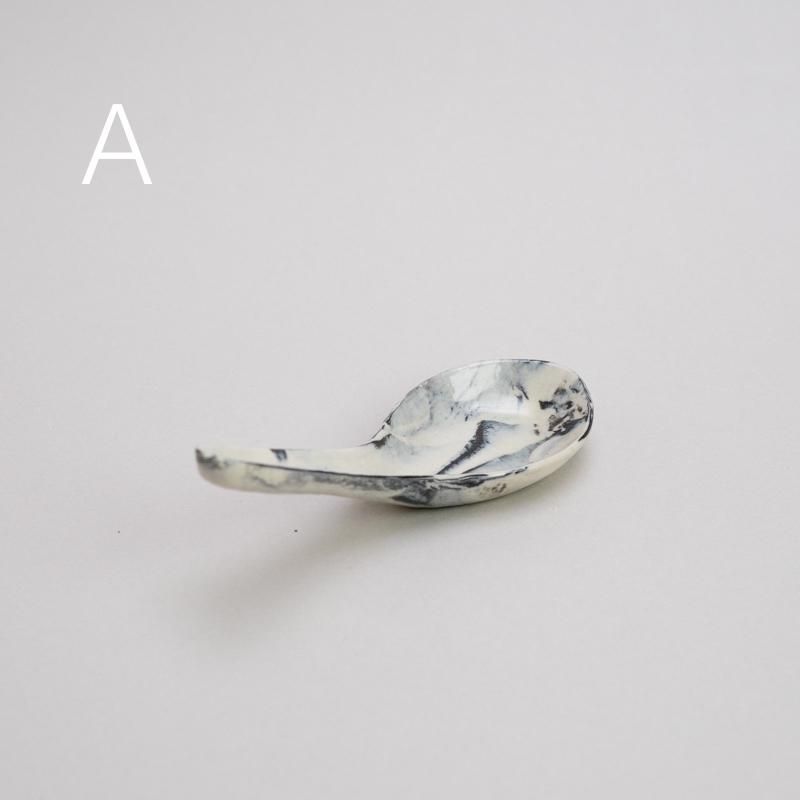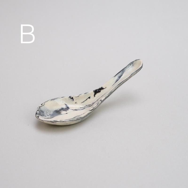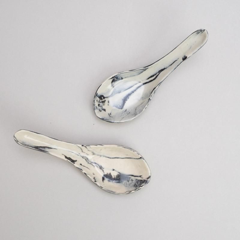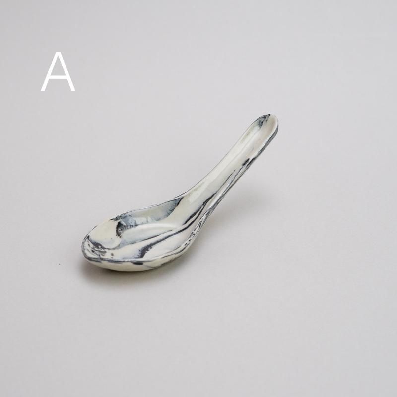 白×黒のマーブルがキュートな陶製れんげ。オプションより柄をお選びください。