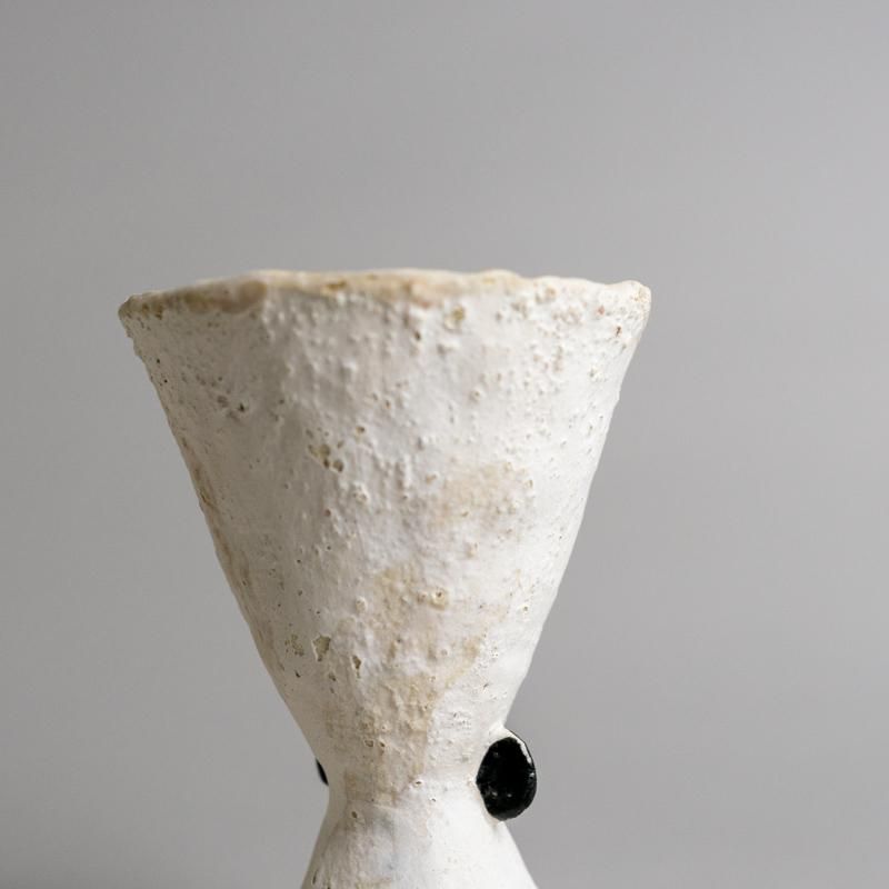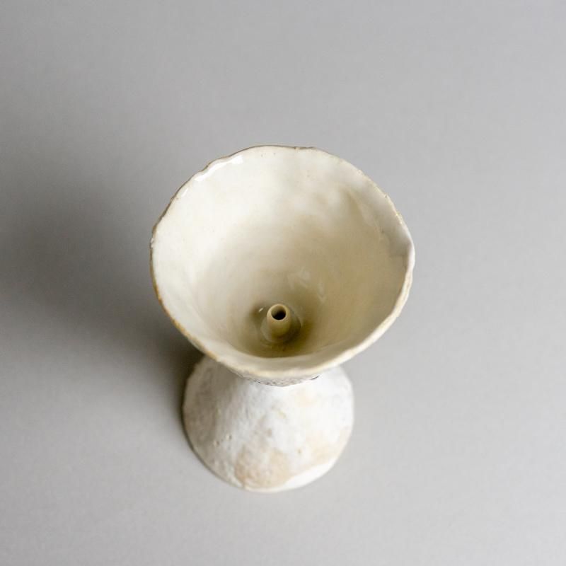 An incense holder that highlights the unique sculptural beauty characteristic of SOK. Its quiet, somewhat primitive presence, the textured earthy surface, and the subtly applied decorations make it truly captivating.