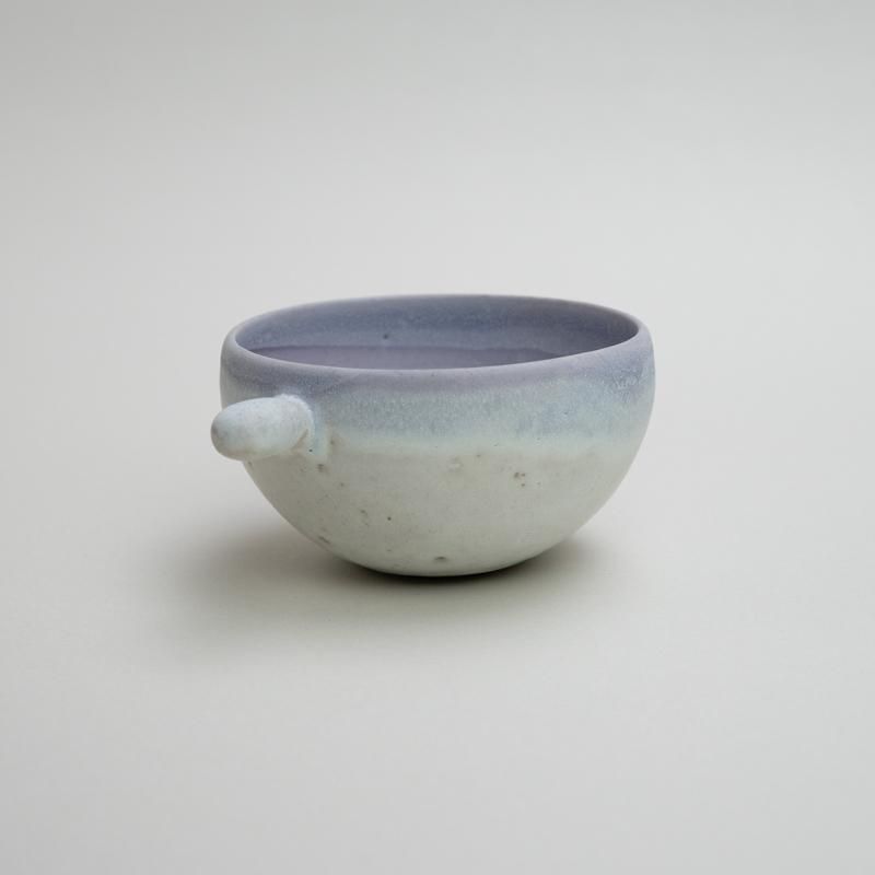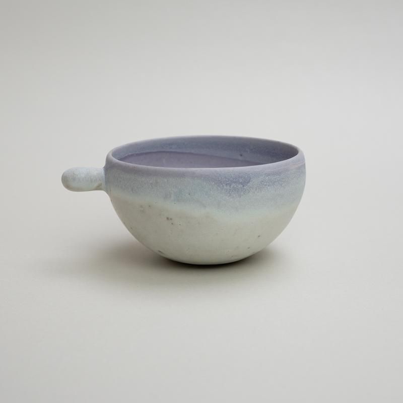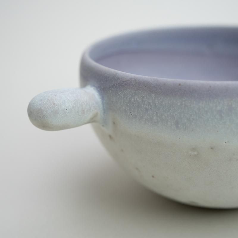 An adorable soup cup with a rounded shape and a small knob-like handle. Perfect for soups or caf_ au lait, and conveniently stackable too.
