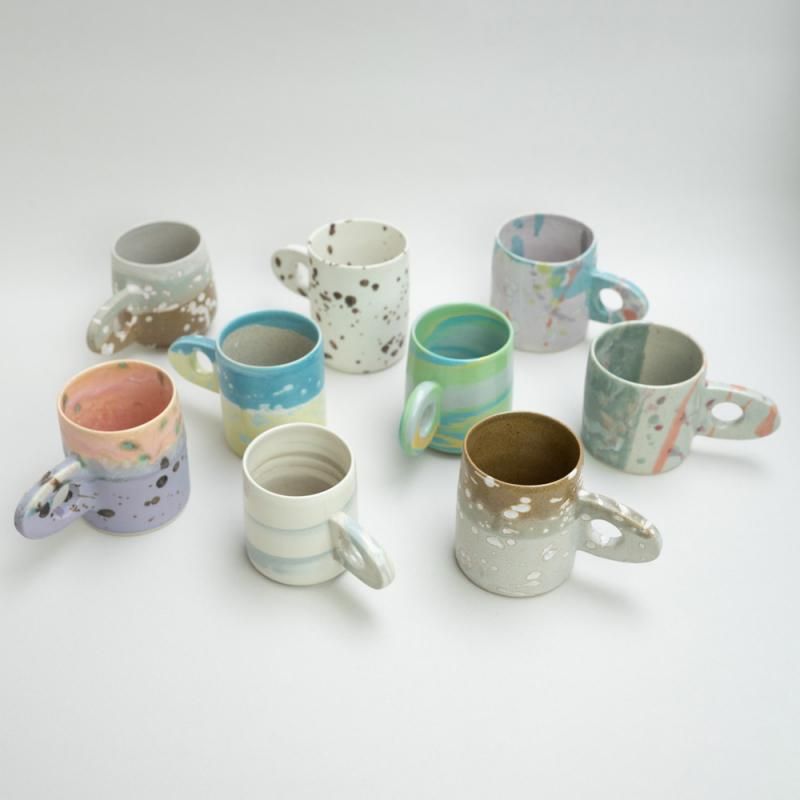 ころんとしたフォルムにぽっちの取手がついた、愛らしいスープカップ。スープにカフェオレに、重宝します。スタッキング可能なところも魅力です。