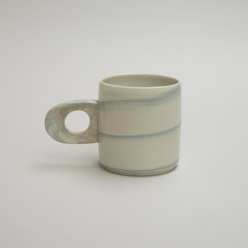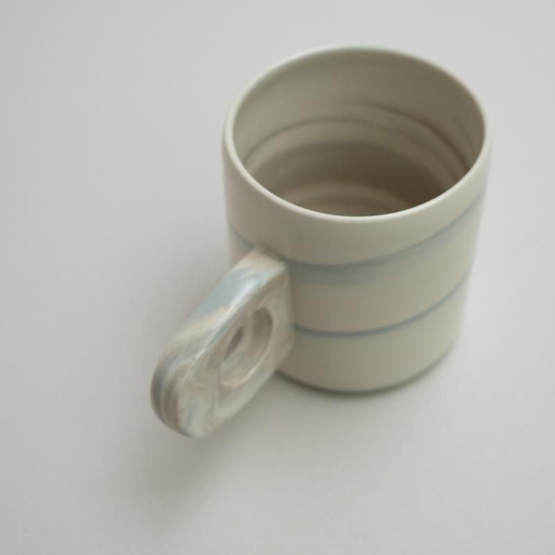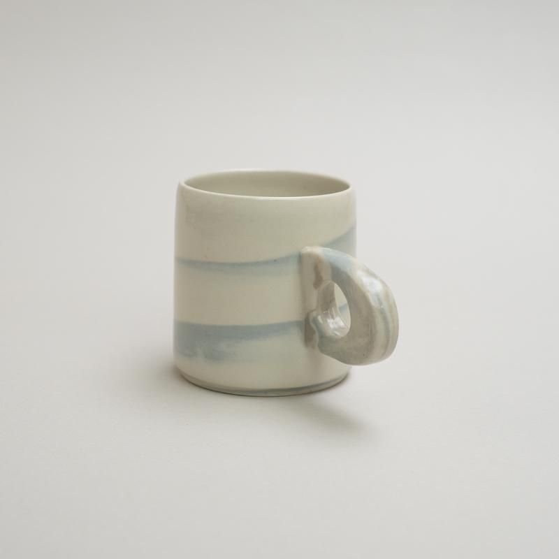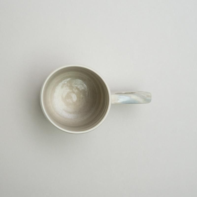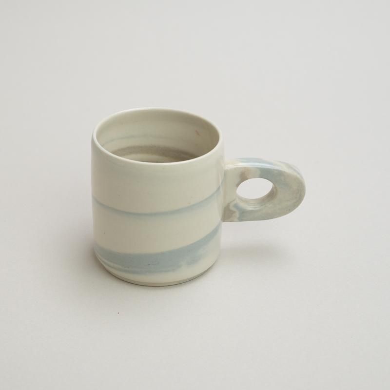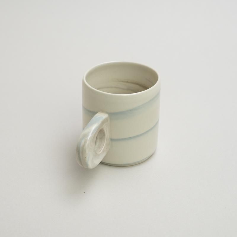 A cute mug with a distinctive handle design. The beautiful use of color, unique to Takemura’s work, is also a highlight.