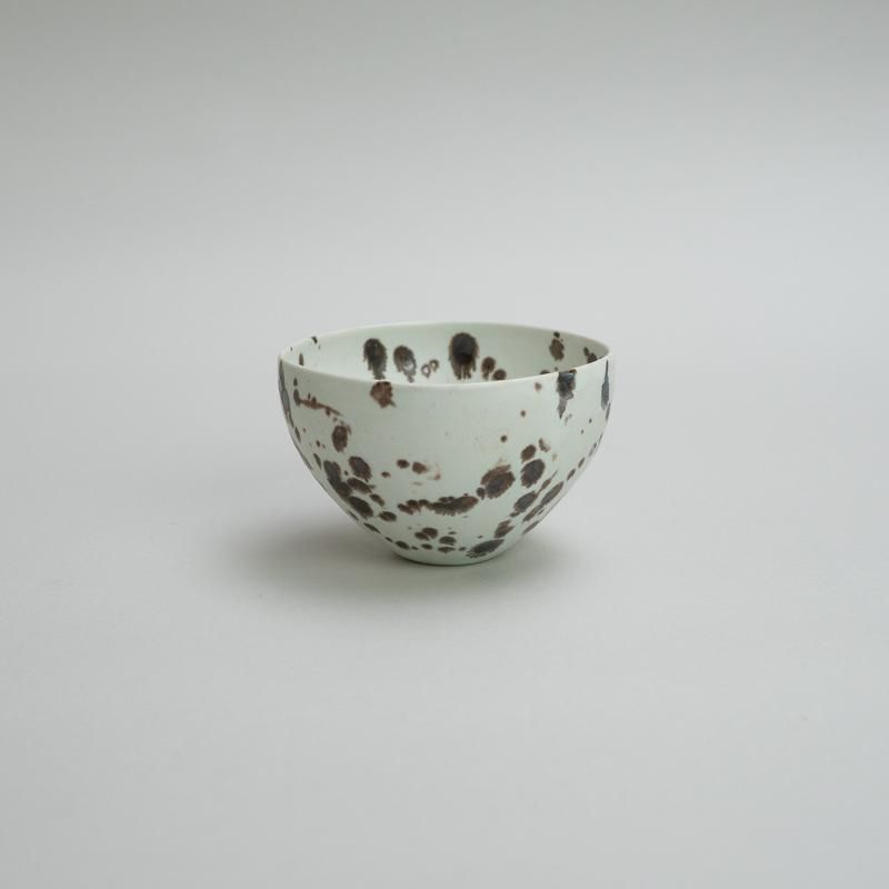 A charmingly rounded square bowl. The monochrome splatter pattern harmonizes with any interior. Perfect for the holiday season.