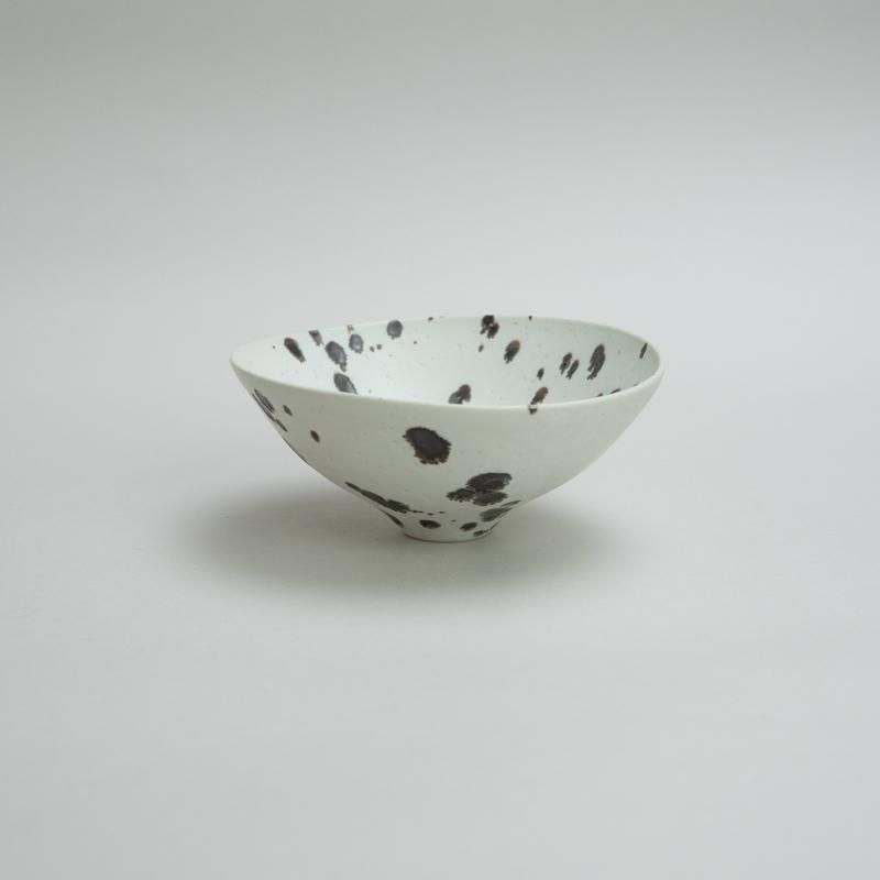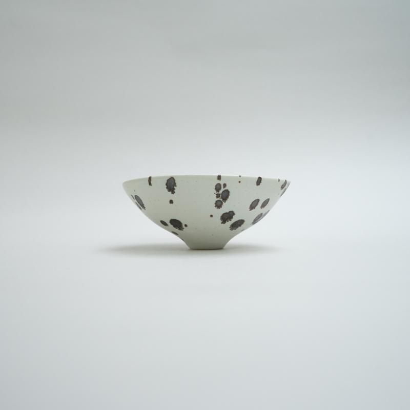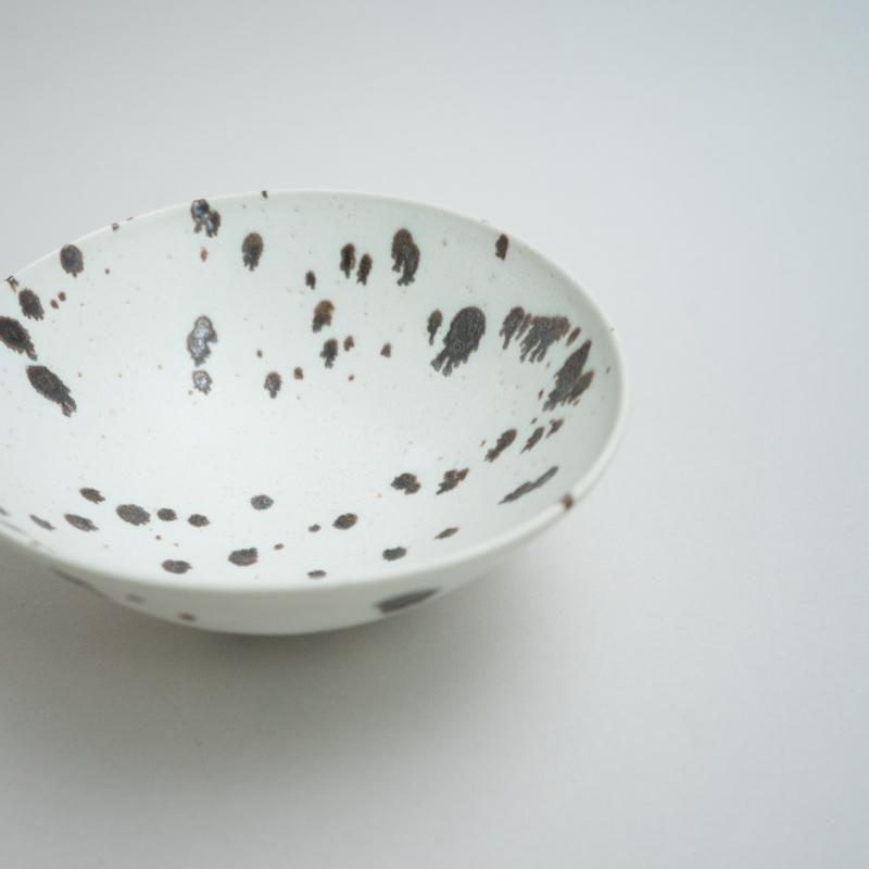 ほんのりたわんだフォルムが柔らかい印象の小鉢。モノトーンの飛ばし柄はどんなインテリアにもマッチ。ホリデーシーズンにも、おすすめです。