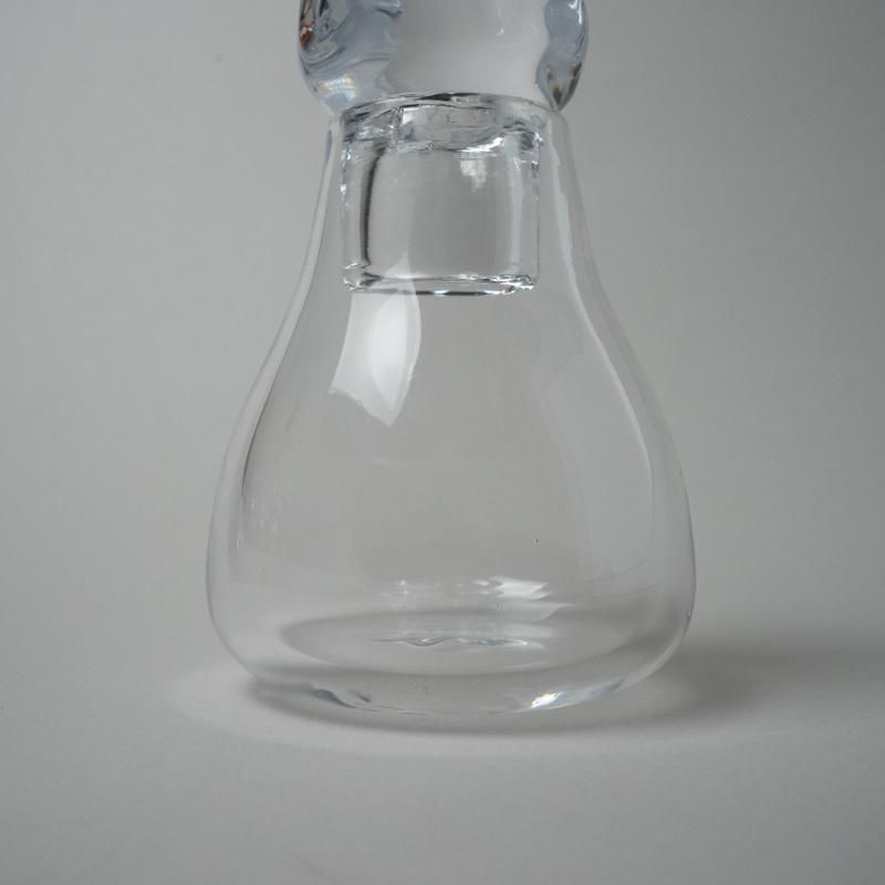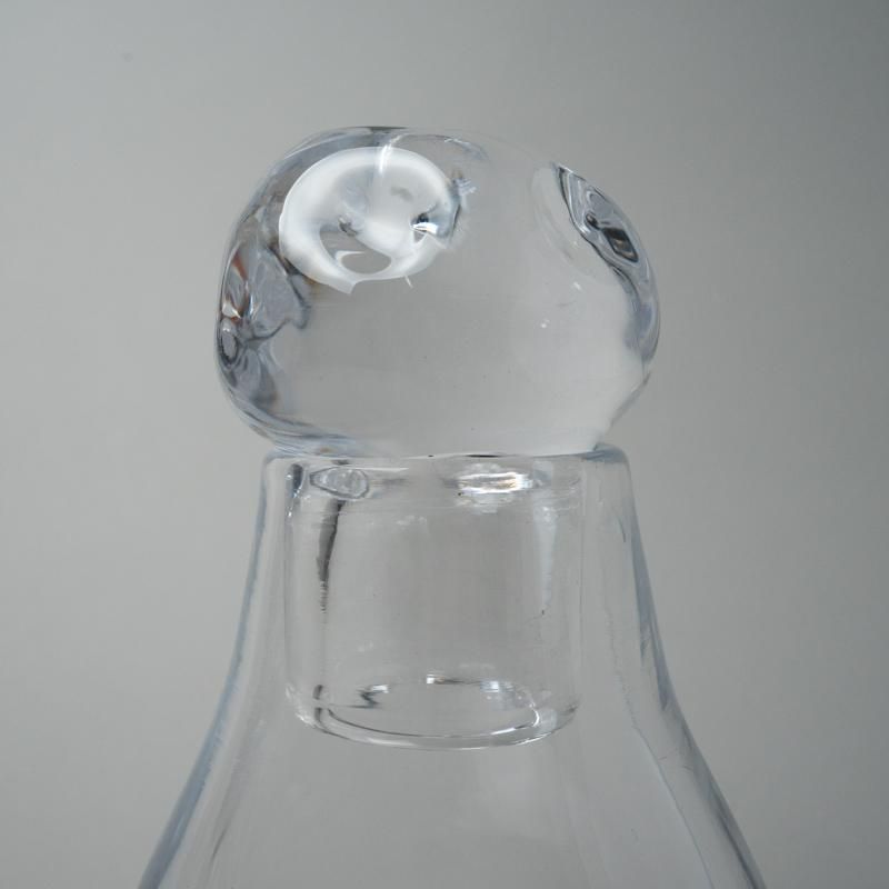 ガラスの茶葉入れ。蓋の内側は、茶葉が約5g測れるようになっています。水を湛えたような揺らぎ、アシンメトリーなフォルムが官能的な魅力溢れる作品です。