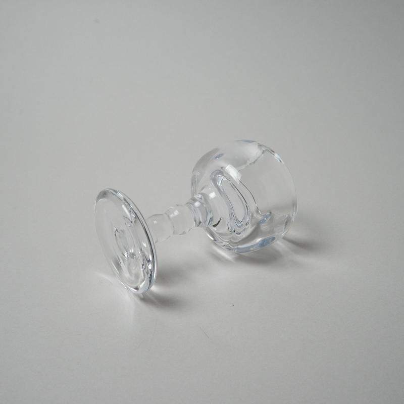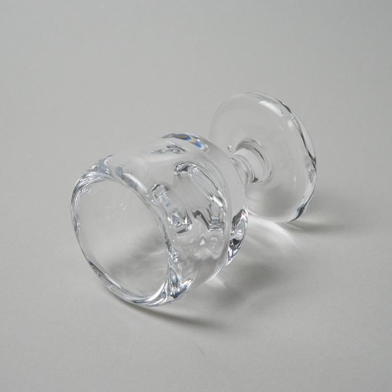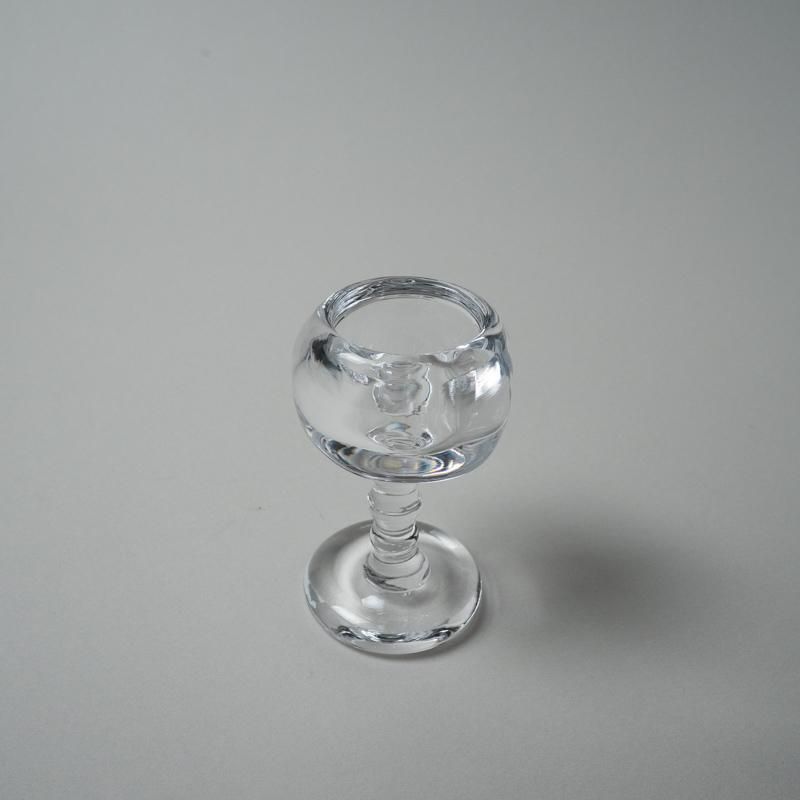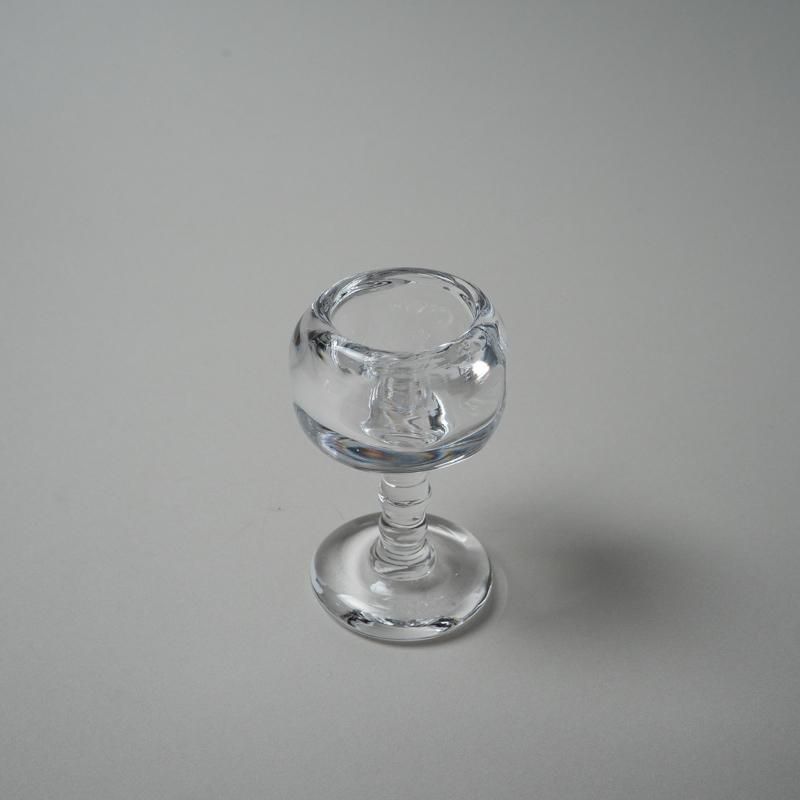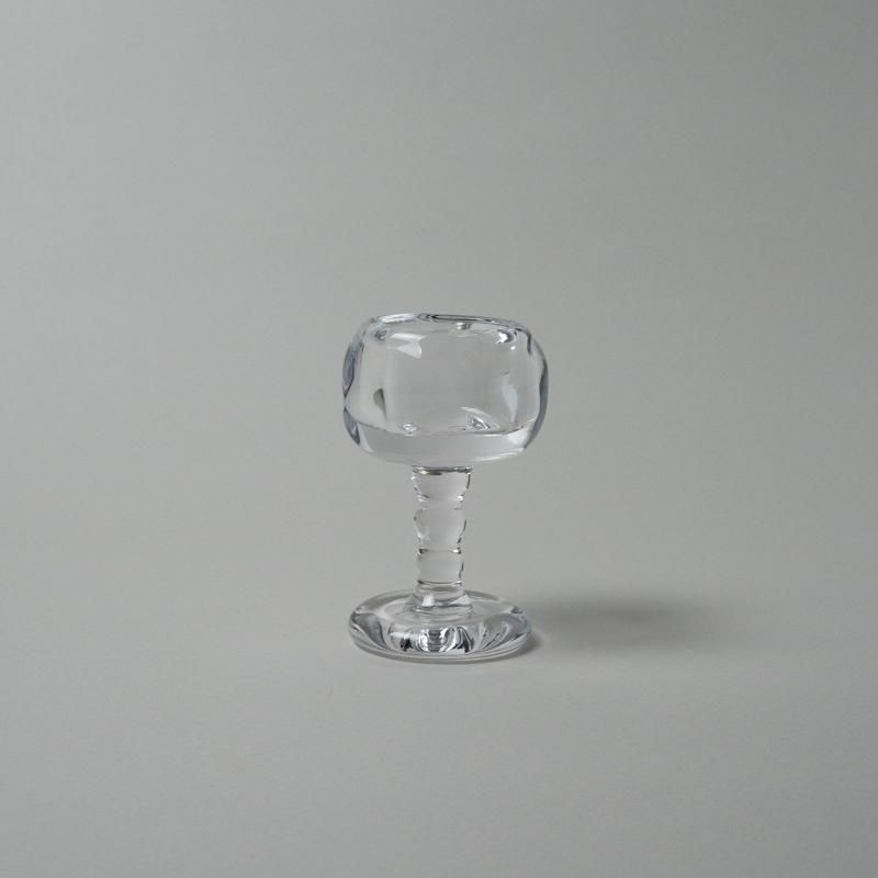 ガラスのキャンドルホルダー。水を湛えたような揺らぎ、アシンメトリーなフォルムが官能的な魅力溢れる作品です。ワイングラスのような佇まいも、キュートです。