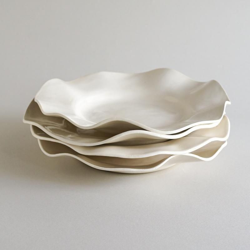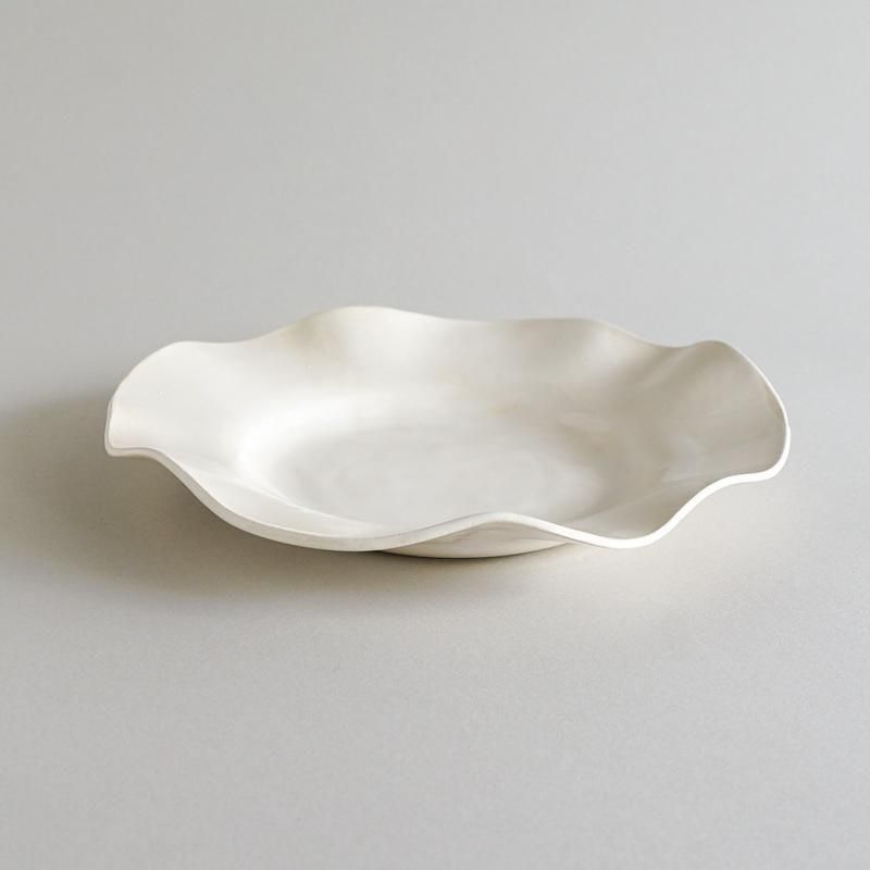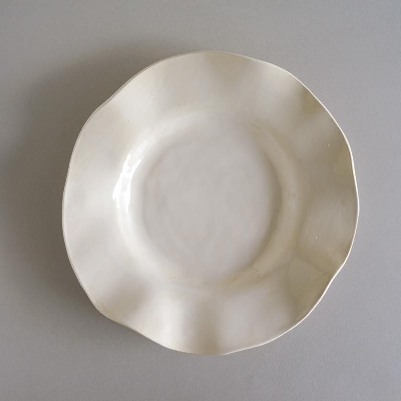ダンスしながら揺れるスカートの裾のように、ひらひらと波打つリムが美しいプレート。スタッキングした時の佇まいも美しいうつわです。