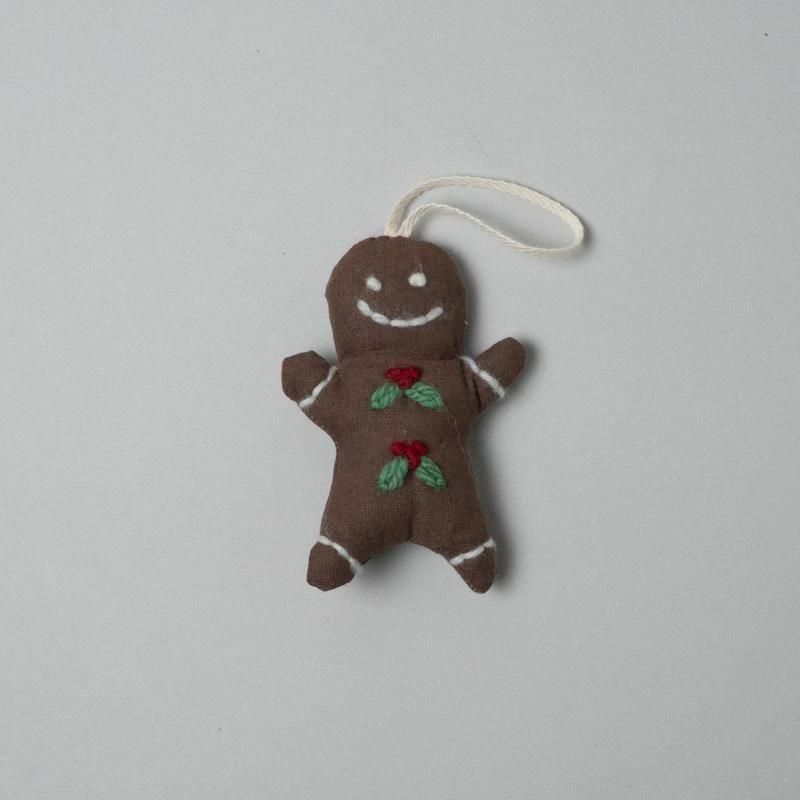 A fabric ornament, entirely handmade and one of a kind. Its charm is delightful enough to display year-round, not just at Christmas.